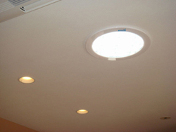 又、屋根には採光ドームが取り付けられ、そこから太陽の光がアルミチューブを伝わり1階の診療室と待合室に自然光として広がっています。(しかも、有害な紫外線は95%カットされています)室内に居ながら自然光を浴びることで生体リズムが整えられ、自律神経の働きやホルモンの分泌を促し、心身に良い影響を与えます。