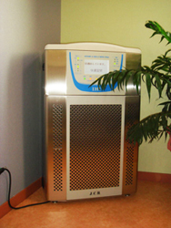オゾンによる除菌・集塵・脱臭装置でホテル・老人福祉施設・病院の手術室等にも採用されている機器です。歯科治療に係わる院内感染予防はもちろん、空気中に浮遊した菌や机やドアノブに付着したウイルスをも不活性化して院内をクリーン化するため、ノロウイルスやインフルエンザにも効果があります。