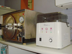 治療で使用する器具はタンパク分解型除菌水で洗浄した後に、一般の歯科診療所で行われる滅菌・消毒の機械で再度消毒しています。
